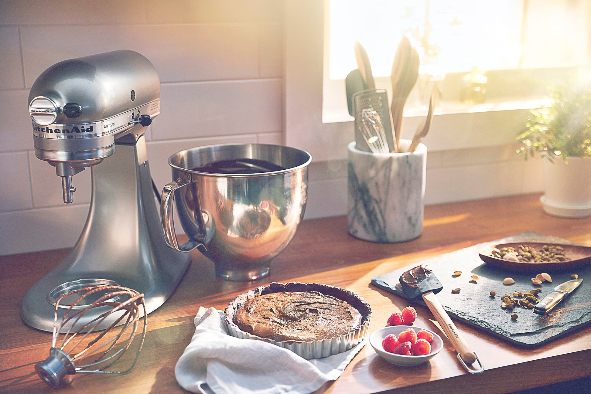 Whether you need 9 dozen* of your signature chocolate chips cookies or shredded chicken for Taco Tuesday with friends and family, the KitchenAid Artisan Series 5 Quart Tilt-Head Stand Mixer has the capacity for every occasion. This durable tilt-head stand mixer was built to last, and features 10 speeds to gently knead, thoroughly mix and whip ingredients for a wide variety of recipes and comes in over 20 colors to perfectly match your kitchen design or personality. Get creative and make more with your mixer with over 10 optional hub-powered attachments**, from food grinders to pasta makers and more. *Using the flat beater; 28g dough each **sold separately.